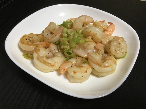 エビが無性に食べたくなり、むきエビをニンニクで炒める。