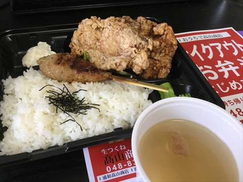 お昼は焼き鳥居酒屋系の「高山商店浦和本店」が始めたお弁当、唐揚げ弁当(750円)。