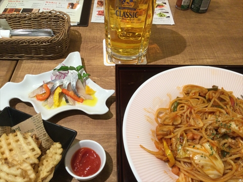 チェックインは16:00からだったので、レストランフロアへ行き一周してから「小樽ニュー三幸」で遅い昼食だか早い夕食だか、とにかくビールを飲んで食事をする。