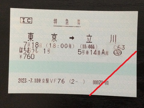 東京18:00(中央本線/特急はちおうじ1号八王子行)→18:44立川