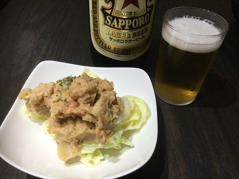 ポテトサラダと厚切りベーコンに瓶ビール3本流し込んでご祝儀込みで3k。