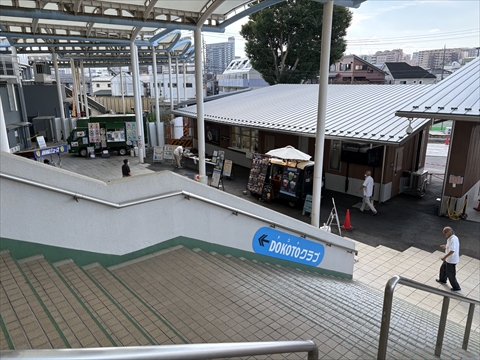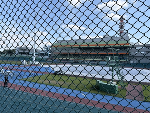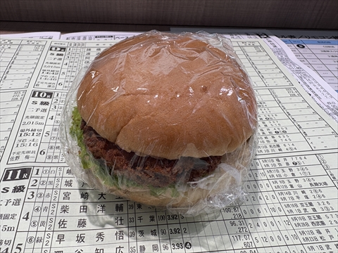 後述のように施設改修中でメインゲート側階段下と特別観覧席2階に簡易売店があるだけ。食事性のメニューはカレーライスくらいで○○定食のようなものは供されない。おにぎりや焼きそばなど軽食メインの中からメンチカツサンド(200円)を買った。OPENから15時頃までの営業だったか。