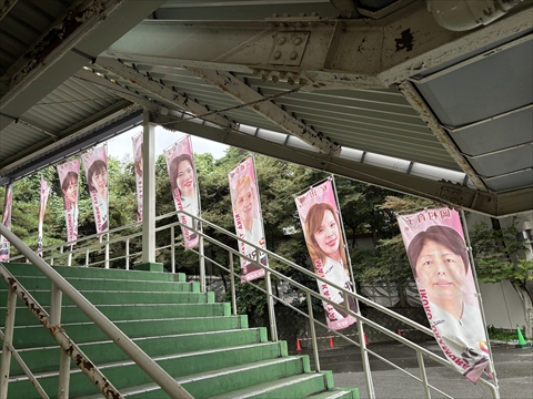 サービスセンター入口前に2名。うち1名はネット上で配信している