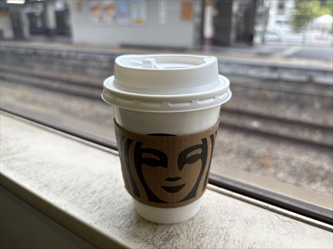 山梨県店舗【セレオ甲府店】では今回のプランの中心であるスターバックス店舗巡りの初回に当たるので店内で過ごしてから次の8:15発で進むつもりでいた。ところが改札を出てすぐの所にあったし、オーダーがトロい先客に邪魔されることも無かったので、6分間の停車時間で買うことができてまた同じ列車で進めることになった。慌てて調べるとこのおかげでアルピコ交通の往復が一本前になった。
