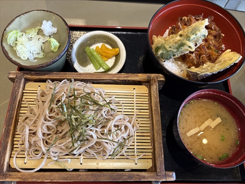 甲府6分間停車での買い物のおかげで、松本では座ってお昼が食べられる。といっても余裕はないので、駅ビルMIDORI4階の「いいだや」でランチのセット(1,100円)を注文。