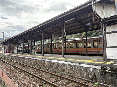 この後の普通列車は11:15発になってしまうし新見でも待つことになるので必然的に特急やくも号への課金を強いられるのもあって、このスジで伯備線を南下できるのが2日目のルート変更と課金場所を決めた要因だった。そこそこ高校生が乗っていたが根雨で全員降りた。昨日に似ているが交換のやくも号が遅れて布原で抑止になるなどで10分ほど遅れた。