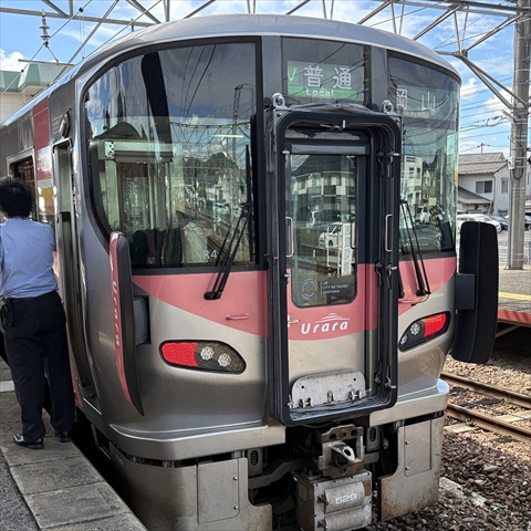 姫新線の2両編成。新見9:46→11:31津山で快速ことぶきに接続して岡山12:49着でも良かったか。津山から先の姫新線は津山12:15→13:12佐用14:40→15:09播磨新宮15:10→15:44姫路とそこそこ良いスジではあったが、津山駅前にスターバックスが無いので今回のテーマからは逸れてしまう。