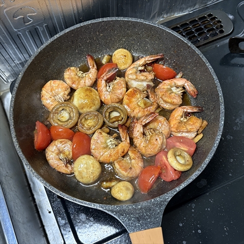 よって、えびとマッシュルームの基本アヒージョを作ってみる。