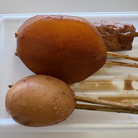 「寿屋」でおでん購入。八丁味噌系。1本120円。