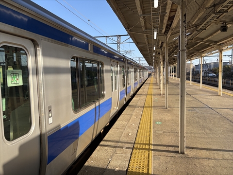 7月にも来たので駅の様子は分かっている。上り電車がすぐ来たので車内で待っていた。あっという間に日が暮れる。