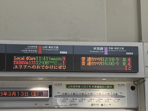 福島10:45(山形新幹線/つばさ131号新庄行)→11:16米沢