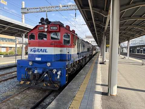 通過する路線名は京釜線~慶全線~木浦宝城線~湖南線ということになろうか。この区間はムグンファ号が最高格で1日2本づつのダイヤなので、日中を走るこの列車の席(しかも窓側)が取れないとシャレにならないので11/11にネット予約決済、21,900KRW/2,433円。予想以上の乗車率で助かった。