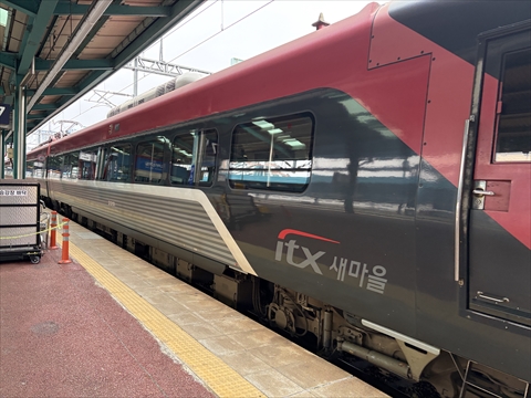 昨日木浦から乗ってきたセマウルでさらに北上する。この100km弱の区間にもKTXの運行があるのだが専用線を通るので、次回以降のことを考慮してここは在来線を進む。朝起きてからネットで予約決済したが窓側が取れた。9,400KRW/1,047円。