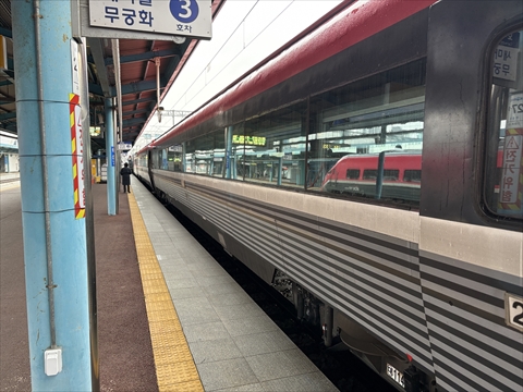 旅行プランを立てている際にこの長項線を検討したところこのセマウル号一択状態(前後はムグンファ号)であったためここも11/13早々ネット予約決済しておいた13,300KRW/1,476円。その割にはガラガラの状態で出発したが、直接ソウル方面へ向かうならばこの列車は利用しないので、実際途中から乗って満席になっていった。