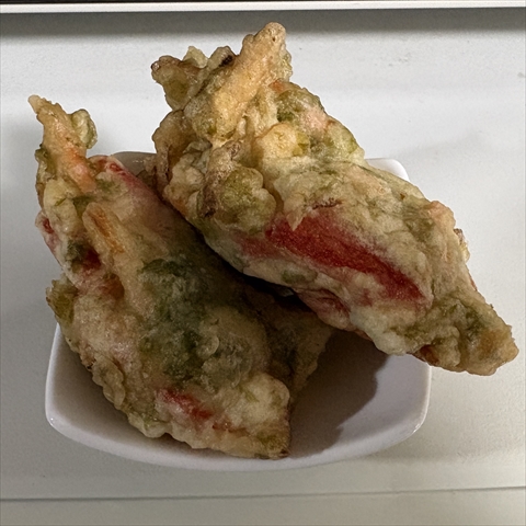 アーサとカニ風味かまぼこ天ぷら。