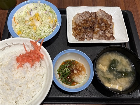 松屋で牛焼肉定食の昼飯。心の平静を保つにはこれに限る。