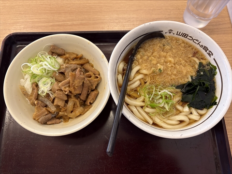 ミニパンチ丼(490円)にたぬきうどん(390円)。