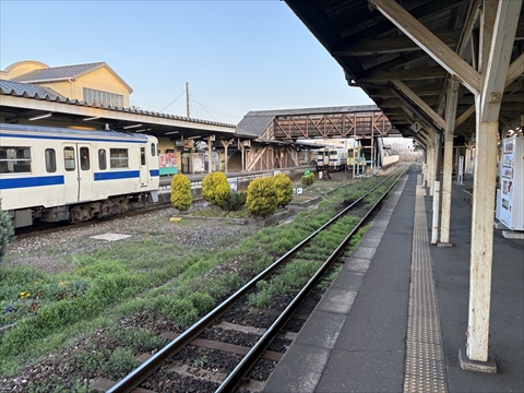 添田駅。ホーム向かい側同士で乗り換える。そのため渋い駅舎へは行かないで済むようになってしまいちょっと残念。