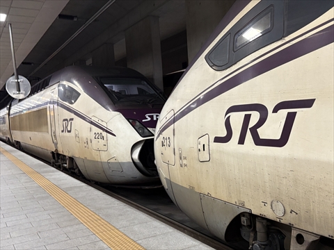 先に光州松汀7:53発のSRT606が到着して、麗水EXPO発のSRT682を後部に併結する。準備編で書いたように光州松汀からは満席で全州からで予約決済、1st.Class 43,500KRW/4,918円。何度かチャレンジしたり、益山から取り直すのも面倒だったのでそのままで乗った。席には水とナッツが置かれていた。SRT専用線はずっと地下だったのは案外。