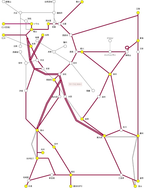 韓国鉄道乗りつぶしに当たり、対象とする路線・区間の確認。【初出:2026/4/5】